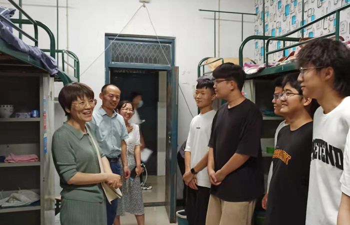 宿舍是学生学习生活的重要场所,是大学教育的重要阵地,外国语学院长期以宿舍文化建设为抓手,坚持“五育”并举,着力构建“三全育人”工作体系。新生入学报到的第一天傍晚,学生工作团队在院党委副书记(临时负责)郝景东和院长张雁凌的带领下深入2021级新生宿舍了解情况,推进养成教育,培养学生良好的生活习惯,加强宿舍文化建设,优化良好的育人环境。