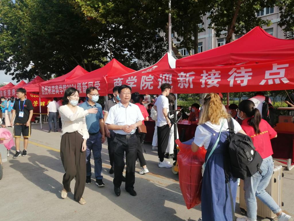 又是一年九月芦花飞的时节,又是一年迎新时。2021年9月12日上午6时,踏着夏末秋初清晨的第一缕阳光,商学院迎新工作有序开始。商学院党委书记肖良,副院长(临时负责)刘红军,副书记周亚,副院长周书灵,副院长宁青青,组织员黄凯,团委老师及新生辅导员到现场开展迎新工作。同时,我校党委书记汪刘送,党委副书记、校长张莉等校领导到我院迎新点,关心关注新生报道情况。