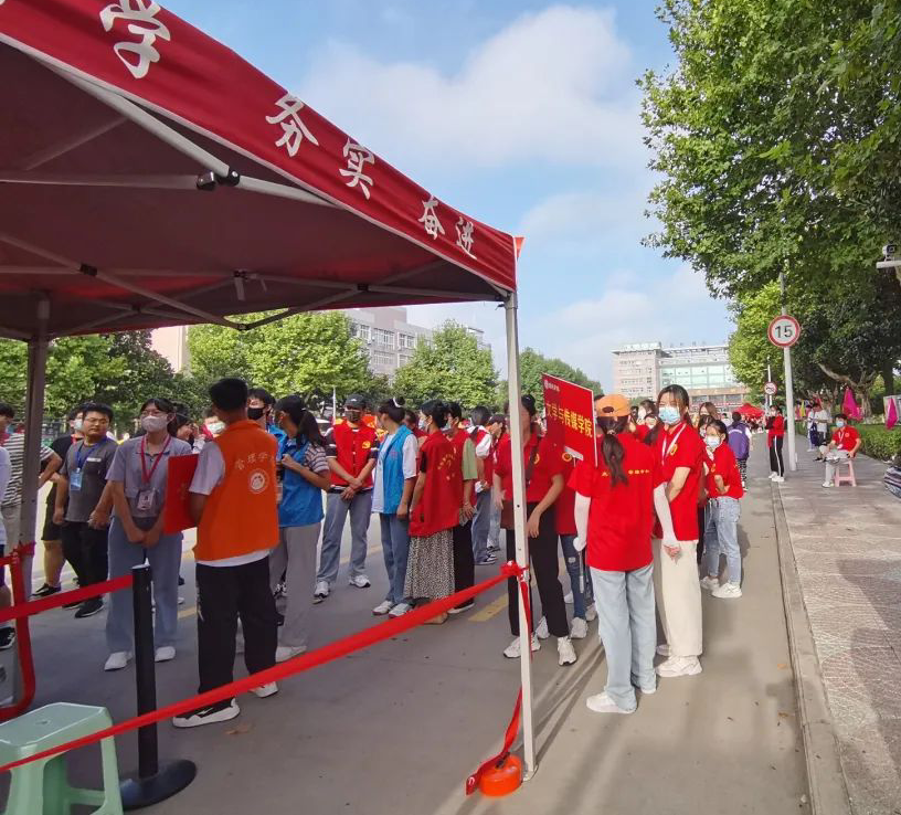 上午7点,迎新工作正式开始。志愿者们分工明确、有条不紊地迎接新同学,为他们耐心讲解入学手续办理细节以及安全须知、引导他们前往报名处领取一卡通和口罩等物品并积极协助新生搬运大件行李。在带领新生前往宿舍楼的途中,志愿者们热情地与新生进行交流,向他们介绍学校并分享自己的大学经历。