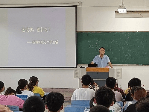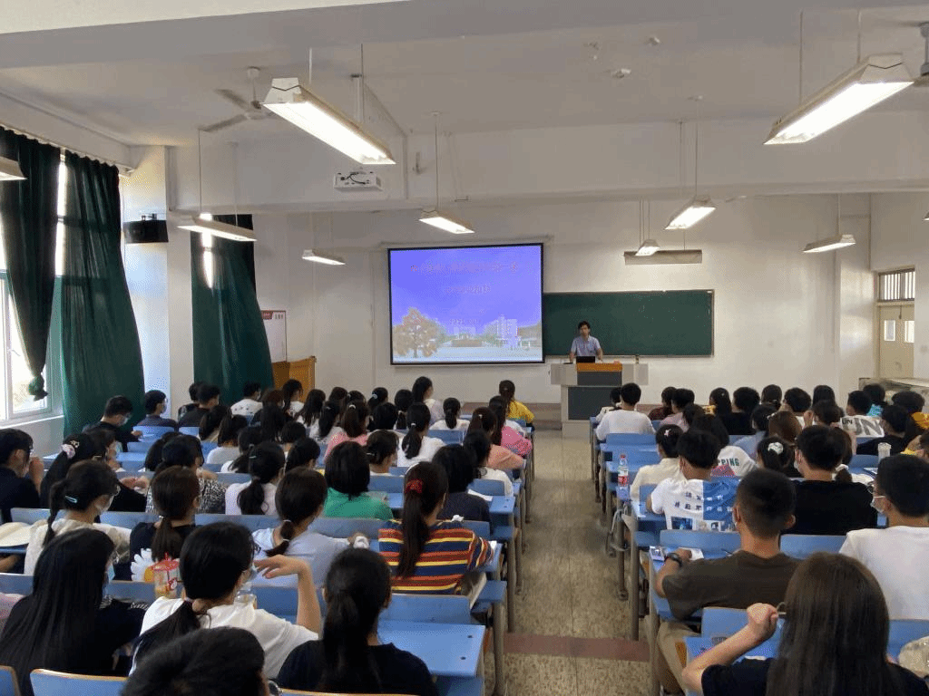 2021年9月14日上午,生物与食品工程学院党委书记赵亮和党委副书记、院长张兴桃在教学楼B308为2021级生物技术专业114名新生进行入学教育讲座。
