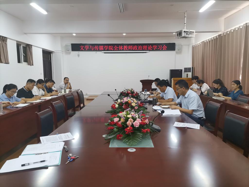 9月15日下午,学院召开教职工理论学习会,会议由学院党委书记杨文艺主持,学院党政班子成员及全体教师参加了学习会。