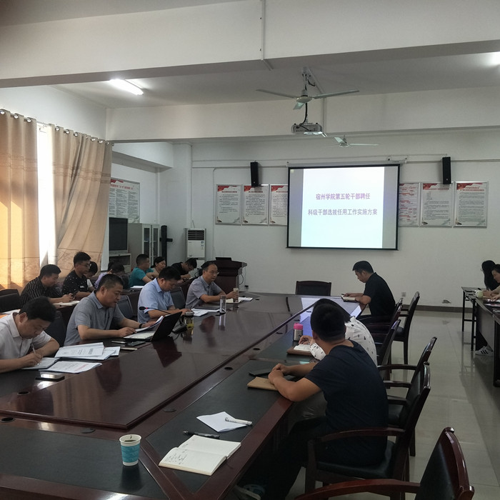 会上,胡冰首先传达了学校召开的宿州学院第五轮科级干部换届聘任工作动员布置会的会议精神,详细解读了《宿州学院第五轮干部聘任科级干部选拔任用工作实施方案》,主要包括聘任范围及职位、组织领导、聘任条件、调选拔任用程序、政策规定、纪律与监督等主要内容。