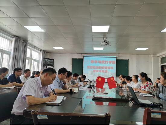 为更好的深入开展数统学院师德师风建设,培养新时代四有好老师,9月15日下午,数学与统计学院在二楼会议室召开了思想政治和师德师风建设专题会。全体教职工参加,会议由党委副书记陈攀峰(临时负责)主持。