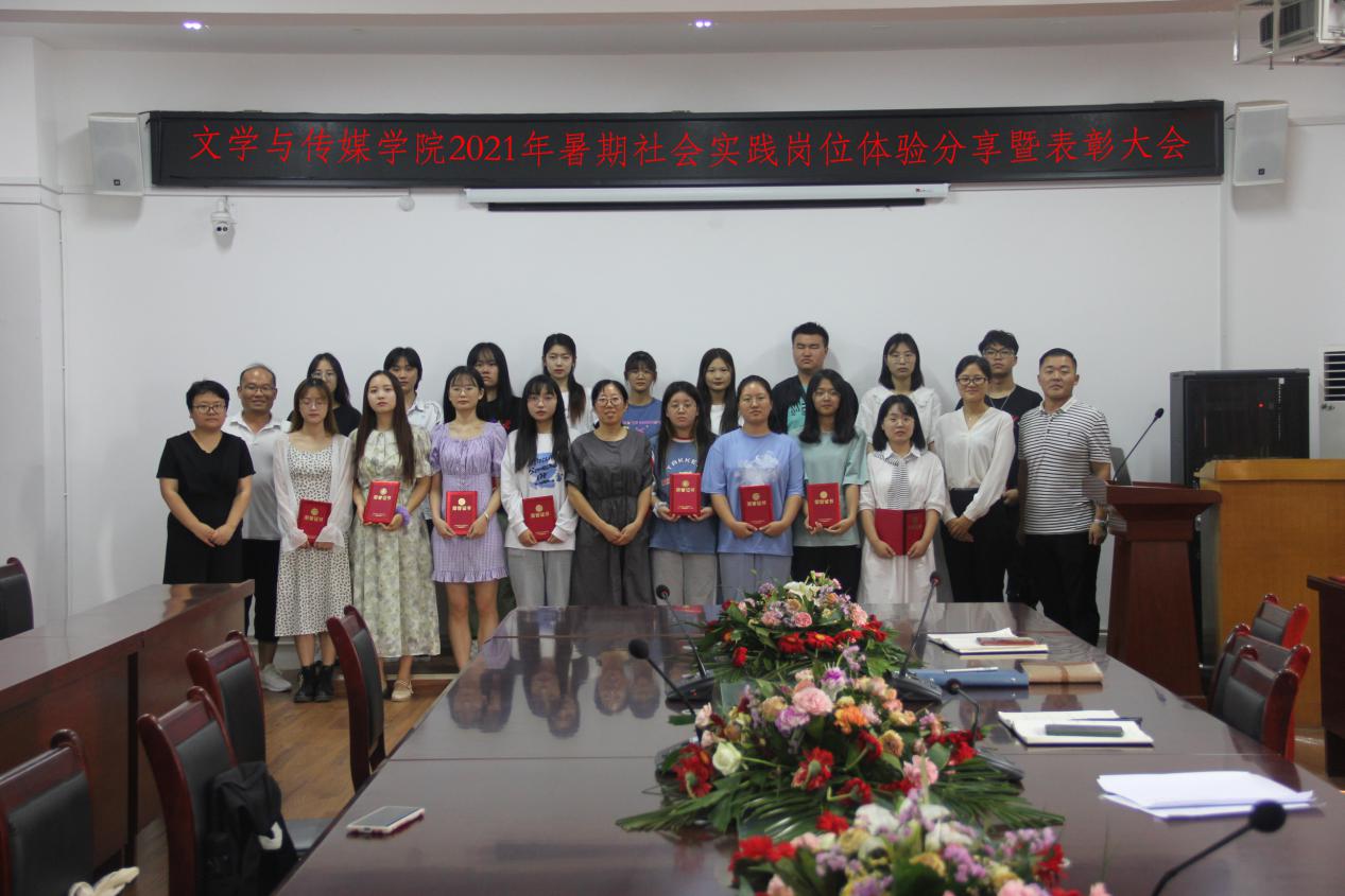为进一步落实三全育人理念,做到思想政治理论教育与社会实践相结合,培养当代大学生的劳动技能,增强大学生的社会实践能力、责任意识。9月18日中午,文学与传媒学院在东教A303召开“2021年暑期社会实践岗位体验分享暨表彰大会”。文学与传媒学院党委副书记刘影,全体辅导员以及2019级、2020级受表彰学生参加。