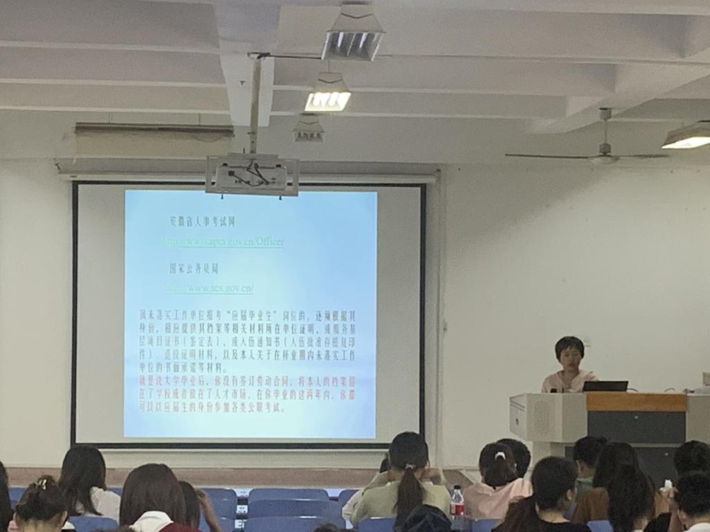 动员会开始,陈攀峰首先为毕业生解读第三方协议,指出同学们签订三方协议的各类注意事项,同时为毕业生说明五个有关劳动合同以及档案归属的相关事项。接着,她强调毕业生应当努力奋斗不忘初心,并对毕业生送出衷心祝福。