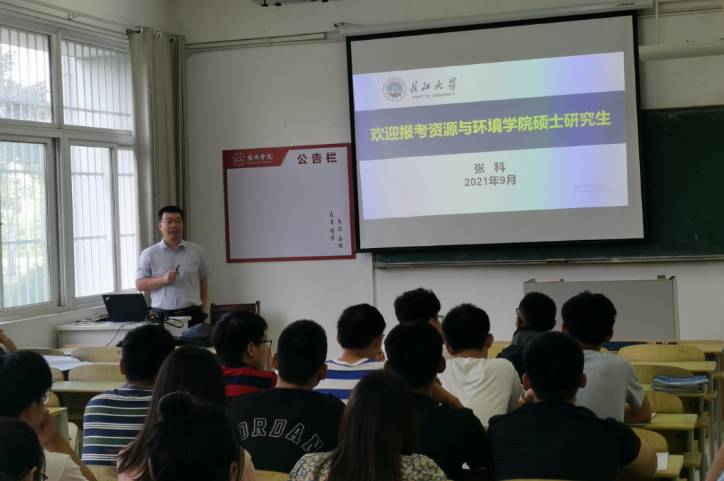 张科书记对陈院长的观点表示赞赏,并对我校资源学院本科生培养质量表示肯定,授予我校资源与土木工程学院“研究生优质生源地”称号,同时为陈松教授等6人颁发研究生导师聘书。张科书记从长江大学学校概况、资源与环境学院简介、研究方向与招生专业、奖助学金政策四个方面对长江大学的招生政策进行精细解读。地球化学系主任肖七林、水文与环境系主任王现勋对研究生招生的学科专业、培养模式、师资力量、科研平台、培养质量以及研招政策、奖助学金设置和就业状况等情况进行了详尽的介绍,对我校学生报考长江大学后继续在我校深造的模式进行了说明,并就如何报考、备考等问题向同学们提出了合理建议,同学们也对各自关系的问题与各位老师进行了讨论和交流,现场气氛热烈。