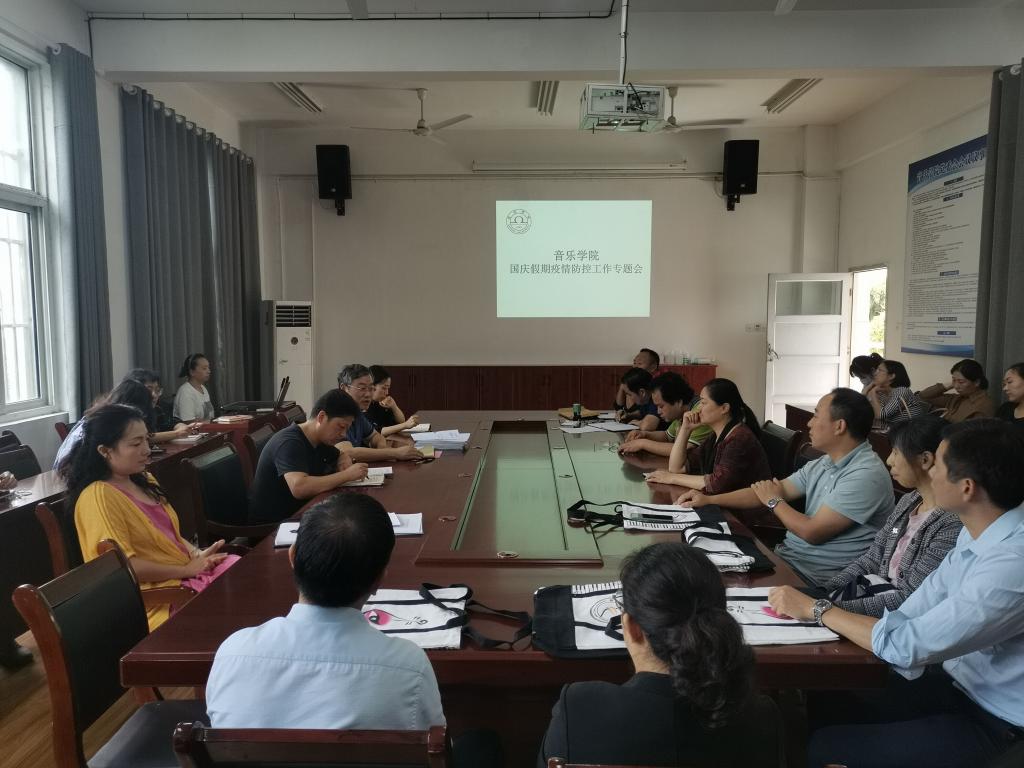 9月29日,音乐学院在一楼会议室召开了音乐学院国庆假期疫情防控工作专题会。党委副书记、院长王善虎,党委副书记(临时负责)徐强,党委副书记、纪委书记李小娜,副院长钦媛以及全体教职工参加了会议,本次会议由徐强主持。