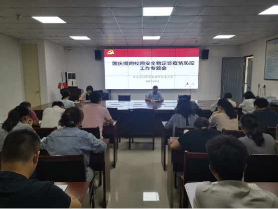 最后,与会人员结合实际情况并根据近期疫情防控工作的具体事宜进行了研讨。此次会议为学院国庆假期间的校园安全稳定、疫情防控工作提供了基本保障。