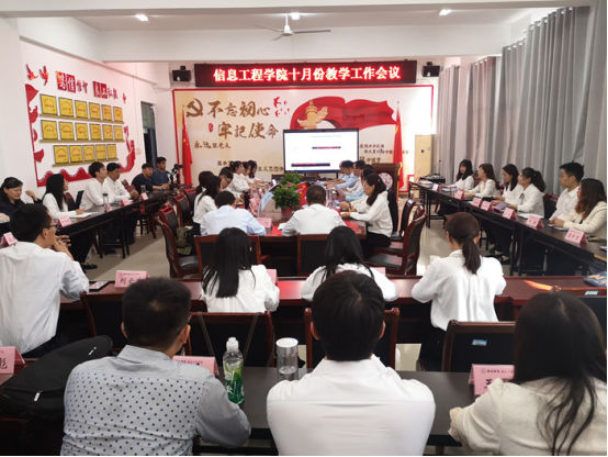 10月13日下午,信息工程学院2021年10月份教学工作例会在工B315会议室召开,信息工程学院党委副书记余晓永(临时负责),信息工程学院党委副书记、院长许海峰,党委副书记、纪委书记吴孝银,组织员黄永刚,科研副院长崔琳,教学副院长潘正高及全体教职工参加会议,会议由潘正高主持。
