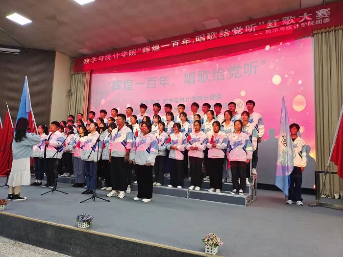 为庆祝中国共产党成立100周年,推动党史学习教育持续深化,充分发挥艺术教育在党史学习教育中的重要作用,激发青年奋发逐梦的活力,数学与统计学院于10月13日下午13:30在教学楼报告厅举行“青春告白祖国”主题系列活动——“ 辉煌一百年,唱歌给党听”红歌合唱比赛。20级与21级8个团支部参加了比赛。校团委书记凌峰、数统学院党委副书记(临时负责)陈攀峰、副院长(临时负责)徐秀荣、党委副书记徐依俭、副院长武以敏、副院长李耀红、校团委老师高歌、分团委书记刘静,以及全体辅导员、各党支部书记莅临比赛现场,音乐学专业学生担任本场比赛评委。