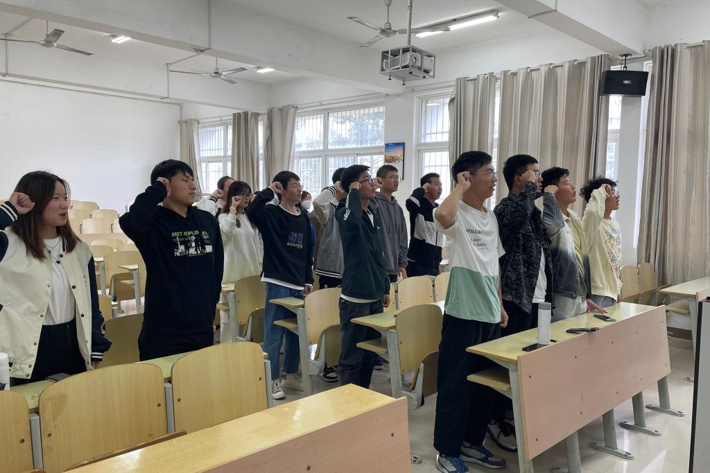 活动开始,共青团组织负责人杨睿带领在场同学重温入团誓词、重唱共青团歌,并带领同学们从电影《孟二冬》片段中认识伟大的共产党员孟二冬先生,让新生团干部了解到无私奉献、爱岗敬业的真正内涵。接下来,共青团组织负责人袁维智以“我爱我的祖国”为题进行PPT演讲,向同学们解释爱国主义的真实意义。然后,共青团组织负责人贺蓉蓉为在场同学们系统介绍了中国共产党的光辉历史、性质和任务,确立了“请党放心,强国有我”的坚定思想。最后,各新生团干部轮流上台发表了自己对祖国的深切赞美和对未来团学工作的安排。