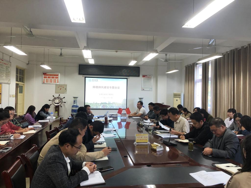为进一步贯彻习近平总书记关于师德师风建设重要论述,进一步规范学院教师职业行为,落实立德树人根本任务,引导广大教师坚定理想信念,10月13日下午,生工学院在学院会议室召开师德师风建设专题会议。院党委书记赵亮、党委副书记、院长张兴桃、副院长王海潮、副院长翟科峰及全体教职工参加了本次会议,会议由赵亮主持。