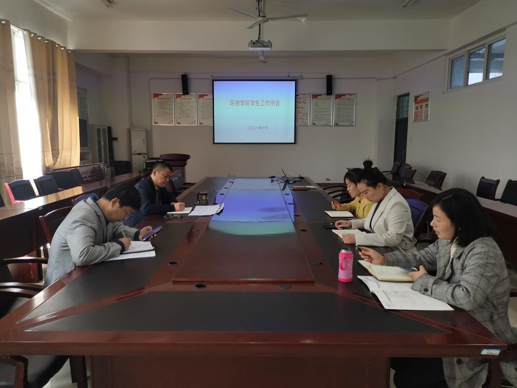 2021年10月18日上午,环测学院在工科楼A315会议室召开学生工作例会,学院党委副书记(临时负责)胡冰、党委副书记李建新及全体辅导员、班主任参加会议,会议由胡冰主持。