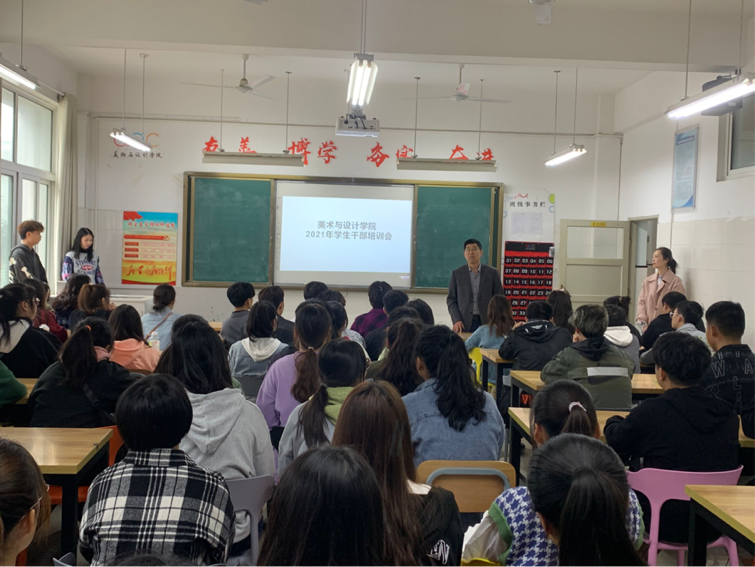 为促进我院学生会相关工作的不断完善。10月18日,美术与设计学院召开2021年全体学生干部工作培训会。院党委书记陈述立,党委副书记、纪委书记边洪强,院团委书记王静以及学生会全体学生干部参加了此次培训会。