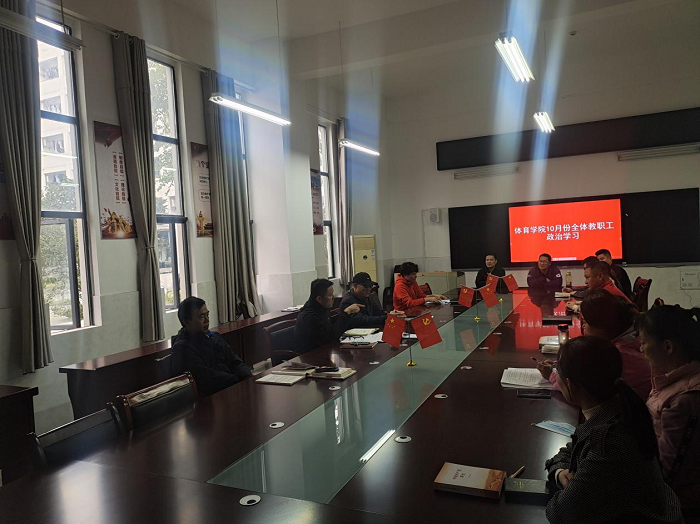 2021年10月20日下午14:30,体育学院开展我院10月份全体教职工政治学习,体育学院党委书记李高、党委副书记、院长白明、党委副书记王德玉、教学副院长陈芳芳及体育学院全体教职工参加,活动由李高主持。