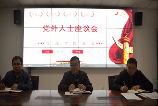 10月20日中午,管理学院党委于实训楼C301召开党外人士座谈会。党委书记蔡若愚、院长韩传龙、党委副书记张增林、民主党派教师和无党派教师参加座谈会。会议由党委书记蔡若愚主持。