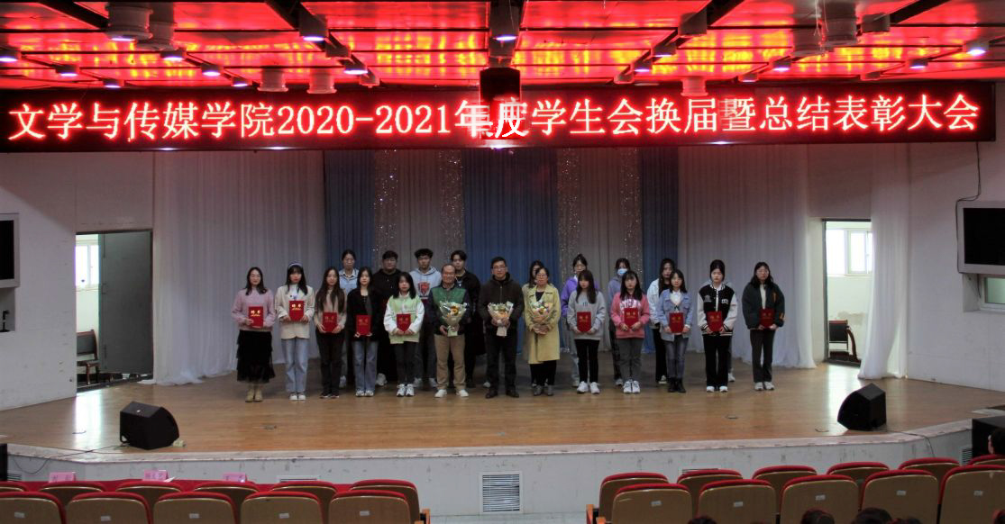 为了总结经验,表彰先进,推动学生会工作再上新台阶,2021年10月20日,文学与传媒学院在音乐厅召开了2020-2021年度学生会换届暨总结表彰大会。文学与传媒学院党委书记杨文艺,党委副书记、纪委书记刘影,分团委书记王磊以及第十一届、第十二届学生会全体成员出席。