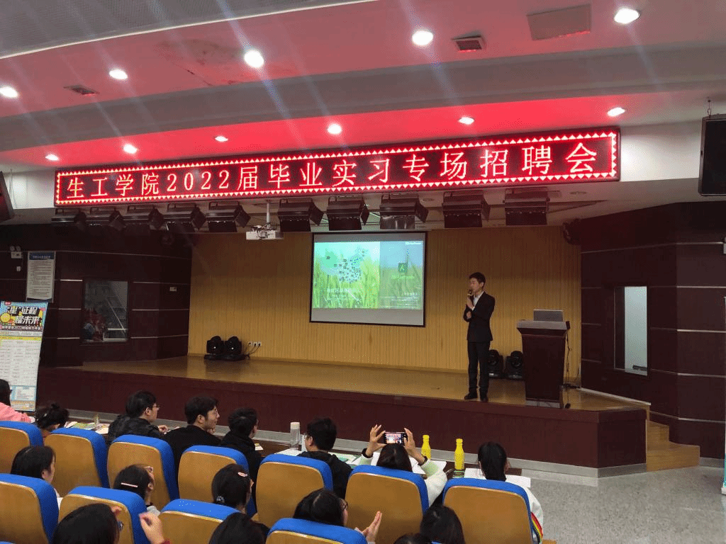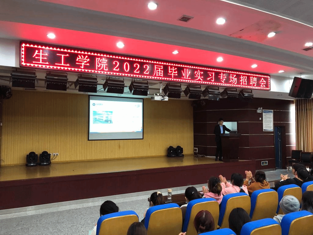 为做好我院毕业生实习就业工作,搭建良好的就业平台,10月21日下午,生物与食品工程学院2022届毕业生实习就业供需双选会在招聘大厅举行。生工学院(教学)副院长王海潮、就业联络员甘守伟老师和广东海大集团、金斯瑞生物科技有限公司、华测生物科技有限公司、合肥统一企业有限公司、蚌埠大成食品有限公司、新宇药业股份有限公司、宿州亿帆药业有限公司等12家企业负责人及2022届生工学院全体毕业生参加会议。