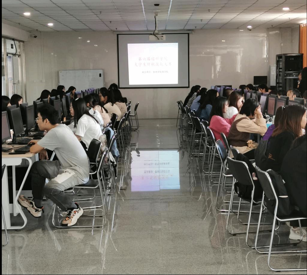 2021年10月13日,由宿州学院教务处主办,宿州学院商学院承办,安徽航天信息科技有限公司提供技术支持的宿州学院第六届大学生财税技能大赛决赛在实训楼B楼举行。