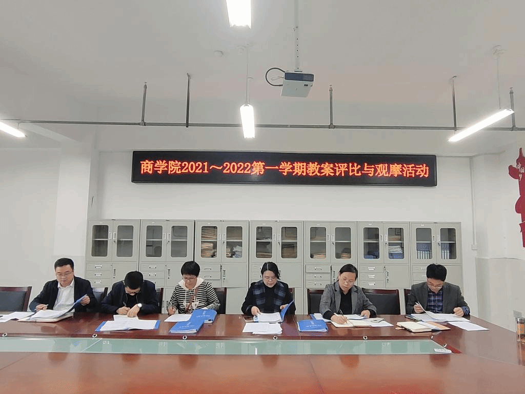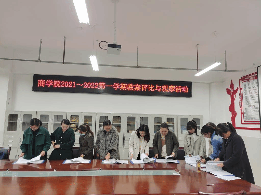 为贯彻学校《关于开展2021-2022学年第一学期“教师课堂教学能力提升”活动的通知》要求,促进青年教师不断提高课堂教学水平和教学质量,。商学院于10月27日下午在实训楼B503会议室举办了 “商学院2021-2022学年第一学期教案评比和优秀教案观摩”活动。