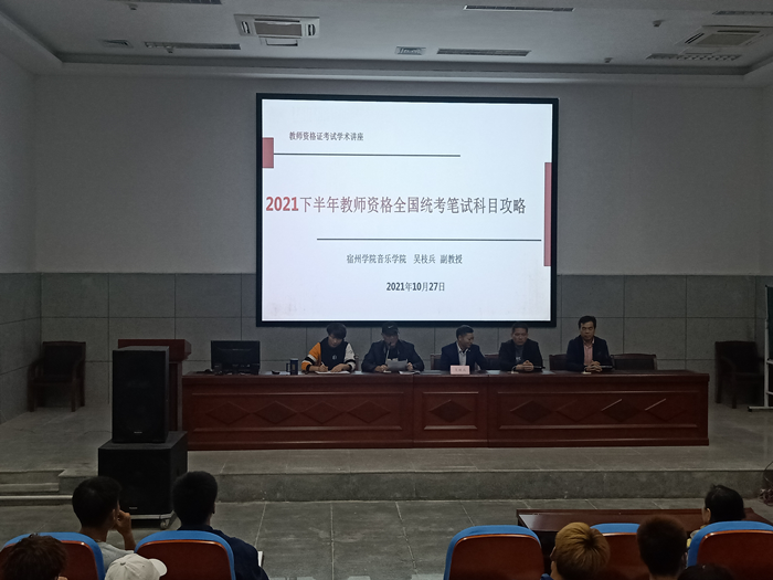 10月27日晚七点,体育学院邀请音乐学院吴枝兵副教授做了题为“2021下半年教师资格全国统考笔试科目攻略”的精彩报告。会议由体育学院党委副书记、院长白明主持,参会人员有党委书记李高、党委副书记王德玉、副院长陈芳芳、体育教育专业2018级和2019级学生等。