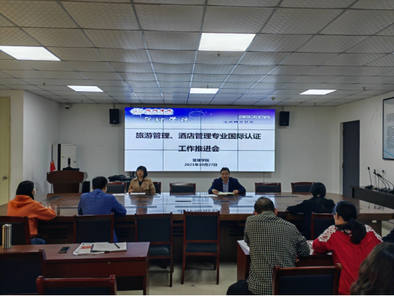 10月27日中午1点,管理学院在实习实训楼C楼C301会议室召开旅游管理、酒店管理专业国际认证工作推进会。副院长宋徽、旅游管理教研室主任李龙、副主任李小芳及其他教学行政人员参加会议,会议由院长韩传龙主持。