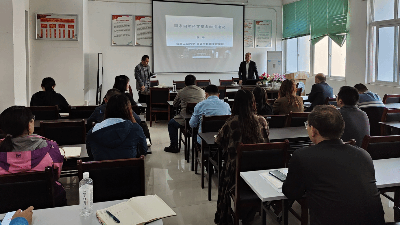 为提前谋划国家自然科学基金申报工作,切实提高学院青年教师撰写基金申报书的水平和质量,应资源与土木工程学院邀请,合肥工业大学资源与环境工程学院院长袁峰教授来我院作自然基金申请建议专题报告。报告会于10月30日在工A314举行,资源与土木工程学院院长陈松、副院长冯松宝、副院长王明梁及资源与土木工程学院全体教师参加了本次专题报告。