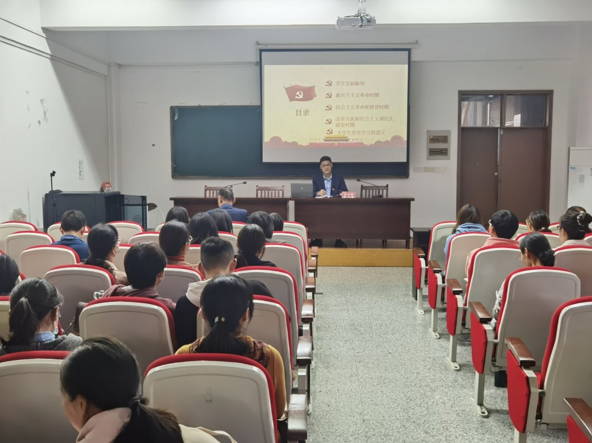 郝景东介绍了中国共产党诞生的历史背景和伟大意义,讲述了党的艰辛历程和丰功伟绩。他希望大广大师生认真学习习近平总书记“七一”重要讲话精神,深刻领会精神实质和丰富内涵,做到知史爱党、知史爱国,在学党史中汲取奋进力量,坚定理想信念,传承弘扬革命先辈的崇高精神。教师在工作岗位上要勤奋努力、开拓创新,坚守立德树人初心、担当教书育人使命;新时代大学生要努力学习科学文化知识,掌握适应现代化建设的本领,担当起建设祖国未来的艰巨使命。
