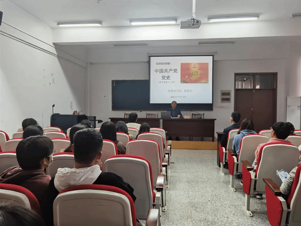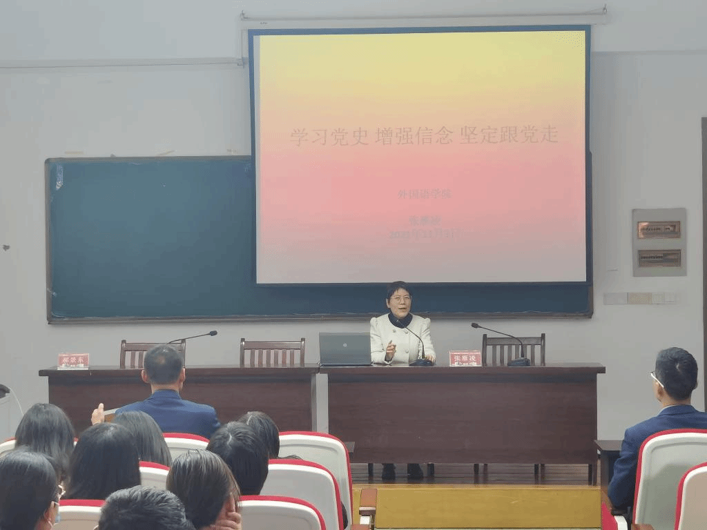为扎实推进党史学习教育,11月3日下午,外国语学院党委副书记(临时负责)郝景东、院长张雁凌和副书记张亚锋带头为全体师生党员讲党课。