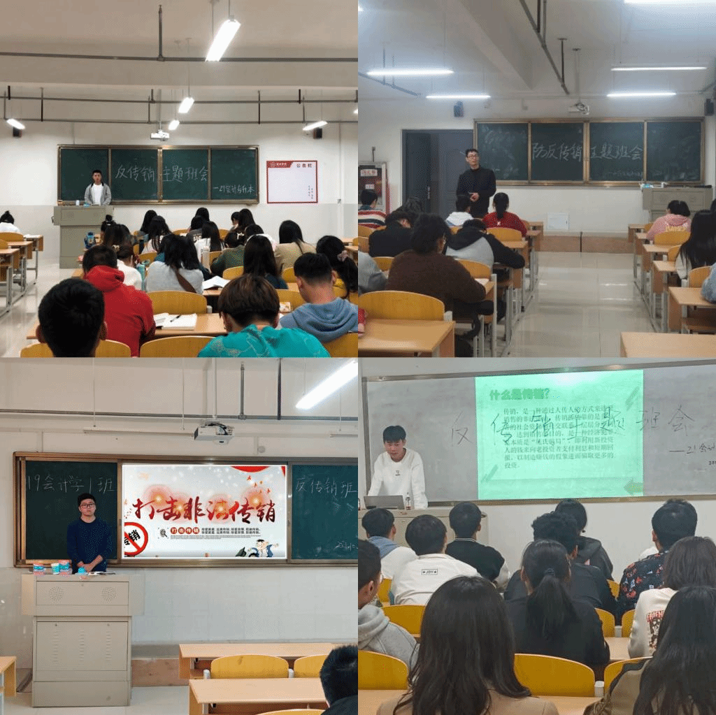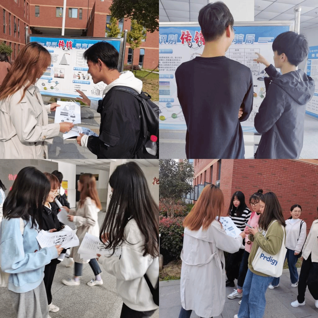 为了切实保护广大学生生命财产安全,维护社会稳定,积极引导师生对传销违法犯罪活动不参与、能识别、敢揭发,有效遏制传销等违法犯罪活动蔓延发展,根据党中央、国务院及省委、安徽省省政府和我院关于打击传销工作的要求,商学院于2021年10月开展了一系列形式多样、内容丰富的防范传销宣传教育活动。