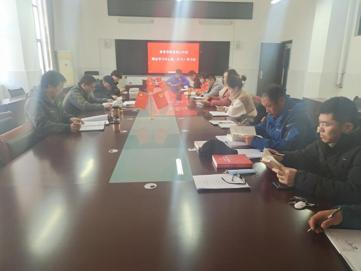 2021年11月9日中午,体育学院党委召开11月份党委理论中心组(扩大)学习会,全体党委委员、科级干部、党支部书记、教研室主任参加学习会。学习会由党委书记李高主持。