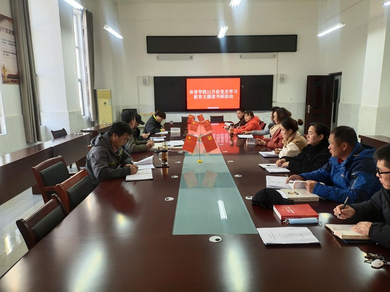 2021年11月9日中午,体育学院党委开展11月份党史学习教育主题读书班活动,全体党委委员、科级干部、党支部书记、教研室主任参加活动。活动由党委书记李高主持。