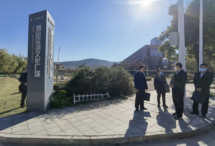 11日上午,在中国矿业大学环境与测绘学院实验中心主任马昌忠、测绘工程系主任、博士生导师张书毕、党政办公室主任修伟杰带领下首先参观了测绘实训文化广场,马昌忠主任详细的介绍了广场的设计理念、功能,该广场建立于2018年,是融实践教学、生产实训、社会培训、教学设计和测绘文化交流等多功能于一体的综合性实验基地,可提供全天候的测量技能训练,有效解决了雨天户外实习难题。