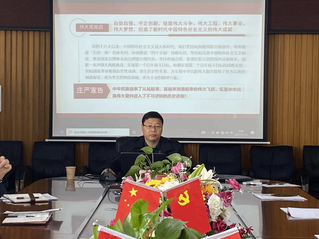11月12日上午,校党委委员、纪委书记王俊在美术与设计学院B402会议室宣讲习近平总书记在庆祝中国共产党成立100周年大会上的重要讲话精神,学院领导班子成员、全体教职工、学生党员代表参加会议。