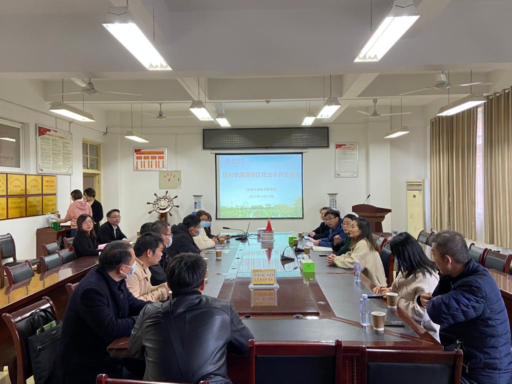 11月12日下午,宿州“4510”校地联合科创行动—宿州学院埇桥区校地合作洽谈对接在我校举行。会后,安徽盛林环保科技有限公司、安徽肥地肥业有限责任公司、恒丰集团皖神公司、宿州市百汇食品有限公司、宿州市徽香源食品有限公司的企业代表前往生物与食品工程学院进行洽谈及现场考察。区委人才发展服务中心主任仇红影,科研处副处长张冰秋,生物与食品工程学院院长张兴桃和相关负责对接的博士等参加了洽谈会。