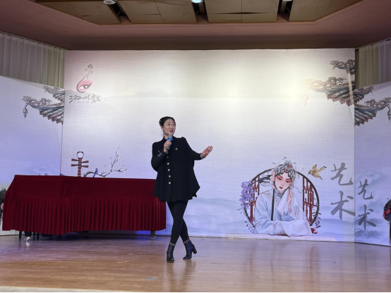 讲座过程中,刘团长就泗州戏的历史流变和当前的社会生存发展现状进行了详细的阐述;随后对泗州戏剧团的建团历史与现行生存状况进行了介绍;最后,针对泗州戏的艺术特征邀请泗州戏剧团的著名演员进行了现场表演与展示,泗州戏青年演员吴平波、柳琴青年主弦伴奏员陈阿磊、泗州戏优秀演员王艺洁、孙杜鹃、孙梅,分别为现场带来具有代表性的唱段与表演技巧、演唱方式进行了深入的讲解与示范。