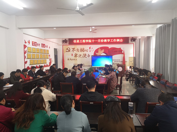 11月17日下午,信息工程学院在工B315会议室召开11月份第二次教学工作例会,信息工程学院党委副书记余晓永(临时负责),党委副书记、院长许海峰,党委副书记、纪委书记吴孝银,科研副院长崔琳,教学副院长潘正高,组织员黄永刚及全体教职工参加会议。会议由许海峰主持。