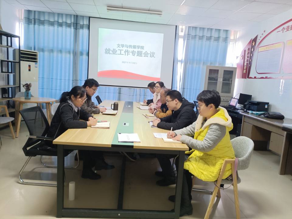 11月22日上午,文学与传媒学院在党团活动室召开就业工作专题会议,文学与传媒学院党委书记杨文艺,党委副书记、纪委书记刘影,各班辅导员参加会议,党委书记杨文艺主持会议。