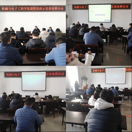 为深入贯彻落实教育部《高等学校课程思政建设指导纲要》文件精神,把思想政治工作贯穿教育教学全过程,发挥课堂教学育人主渠道作用,进一步推进课程思政建设提质增效。11月23日下午,机械与电子工程学院在工科C楼会议室举办了课程思政示范课观摩活动,党委书记杨杰、副院长王桂英及各教研室教师参加,活动由杨杰主持。