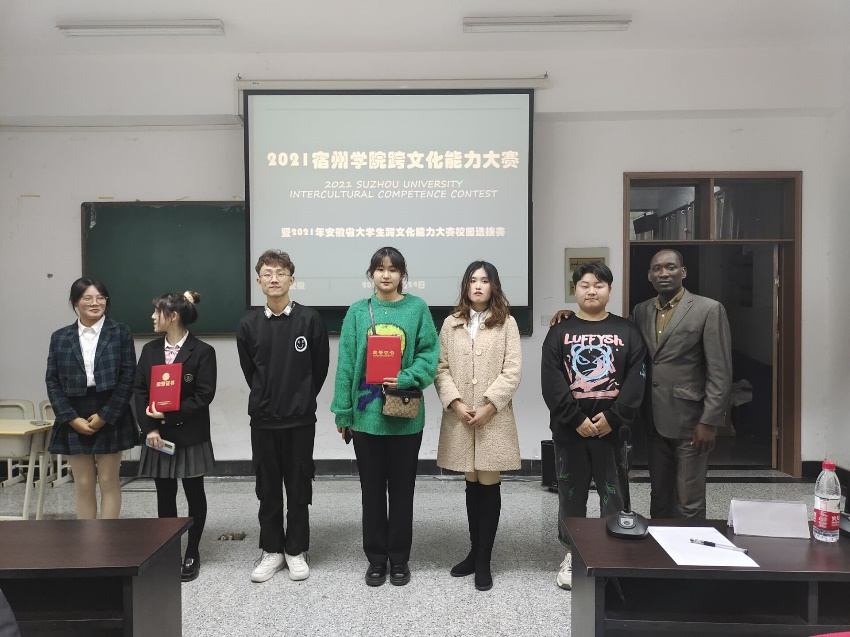 为了“讲好中国故事,传播好中国声音”,锻炼大学生的语言能力,11月24日下午,我校在逸夫楼一楼会议室成功举办了2021年安徽省大学生跨文化能力大赛校内选拔赛。此次选拔赛面向我校全日制本科在读学生,并分为日语组和英语组,共24支参赛队伍,由外国语学院谢冰老师、外教Michael老师以及宿州学院首届跨文化能力大赛冠军组成员、17英语专业同学张肖林担任评委。