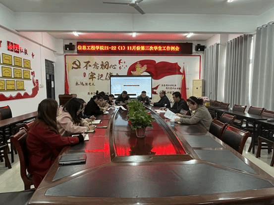 11月29日下午,信息工程学院在工B315会议室召开11月份第三次学生工作例会。会议由信息工程学院党委副书记(临时负责)余晓永主持,信息工程学院党委副书记、纪委书记吴孝银、信息工程学院组织员(副处级)黄永刚和全体辅导员(班主任)参加了会议。