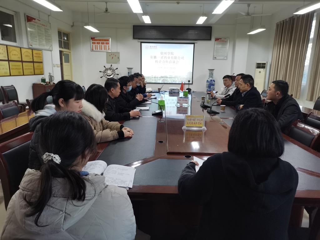 12月1日下午,安徽一灵药业有限公司顾世海董事长一行来到生工学院开展校企合作洽谈会,宿州科技局杨夫杰主任,科研处处长林永,生工学院党委副书记、院长张兴桃,副院长王海潮及药学专业教师参加了此次洽谈会。