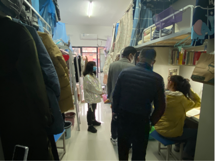 走访期间,张亚锋及辅导员与学生进行亲切交流,深入了解学生学习、生活和就业情况,认真听取学生的反馈,仔细查看了寝室卫生情况,逐项排查安全隐患,强调学校疫情防控和安全管理方面的要求,叮嘱同学们要加强安全防范和卫生意识,自觉遵守学校规章制度,注意用电安全,严防火灾和人身意外伤害事故的发生,提高安全防范意识、警惕各种诈骗手段、提高自我保护能力;勉励学生养成良好的生活和卫生习惯,营造优良学风和积极健康的宿舍文化,共同创建安全、文明、和谐、温馨的宿舍环境。