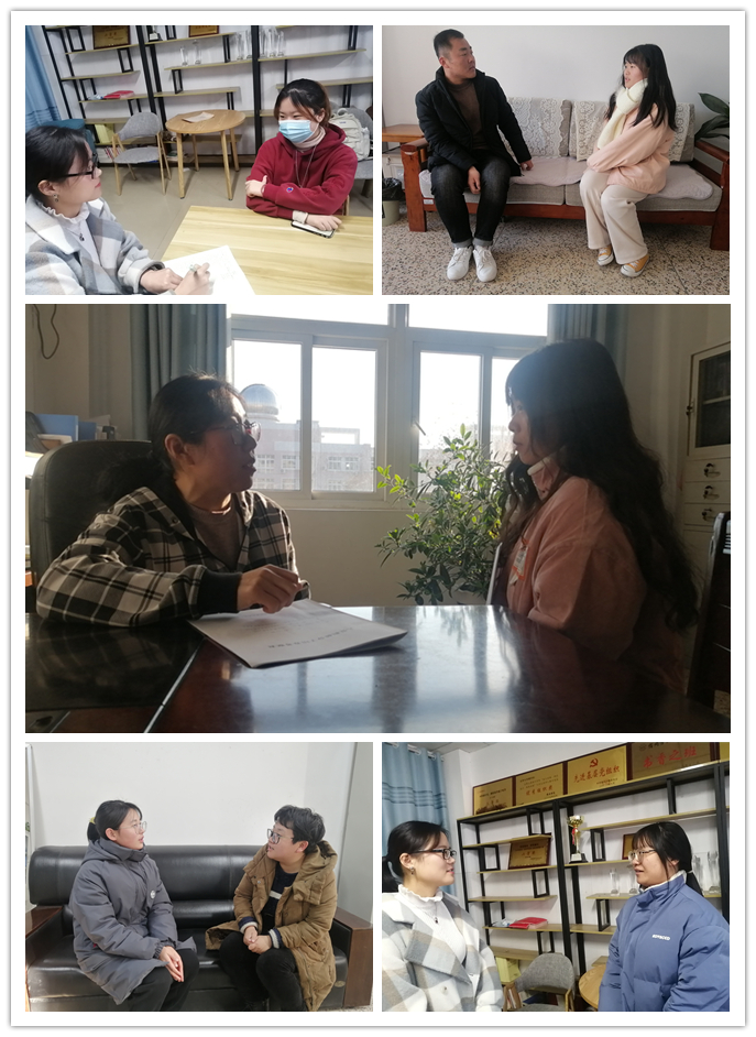 根据《文学与传媒学院大学生思想政治教育谈心谈话制度》文件精神,学院全体辅导员根据各年级、各班级同学思想状况、身心健康、性格心理等特点,主动走到学生身边,与同学开展一对一谈心谈话,充分了解掌握学生的学习、生活、思想状况,及时发现存在的问题,耐心帮助学生解疑答惑,重点关心家庭经济贫困学生、身体心理障碍者等特殊群体的心理疏导工作,做到育德和育心相结合、管理和服务相结合、人文关怀和心理疏导相结合,并做好相应的谈话记录,形成学生学习成长档案。