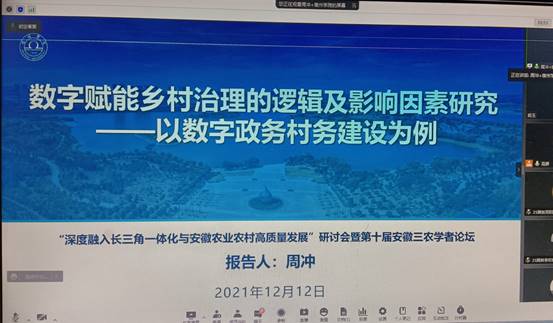 12月12日,管理学院周冲老师、曾增老师、刘润喆老师线上参加了“深度融入长三角一体化与安徽农业农村高质量发展”研讨会暨第十届安徽三农学者论坛。
