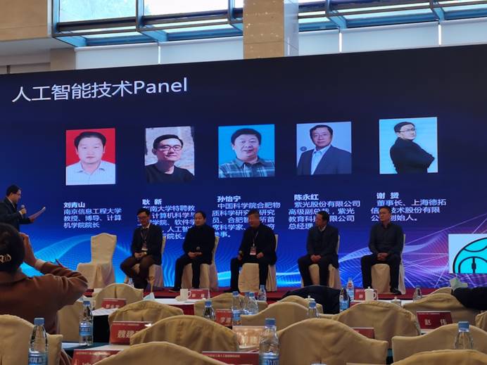 论坛邀请了长三角著名人工智能专家东南大学耿新教授、南京信息工程大学刘青山教授、中国科学技术大学陈恩红教授、紫光集团陈永红副总裁、安徽大学张兴义教授、合肥工业大学姜元春教授、上海德拓信息技术股份有限公司谢赟董事长以及中国科学院合肥物质研究院孙怡宁研究员在本次大会上做了前沿报告。同时本次论坛还设置了人工智能技术圆桌讨论环节。在圆桌讨论环节上,专家学者与嘉宾就人工智能产业的未来发展、人工智能人才培养模式、科教融合、产教融合等前沿和热点问题进行深入探讨。