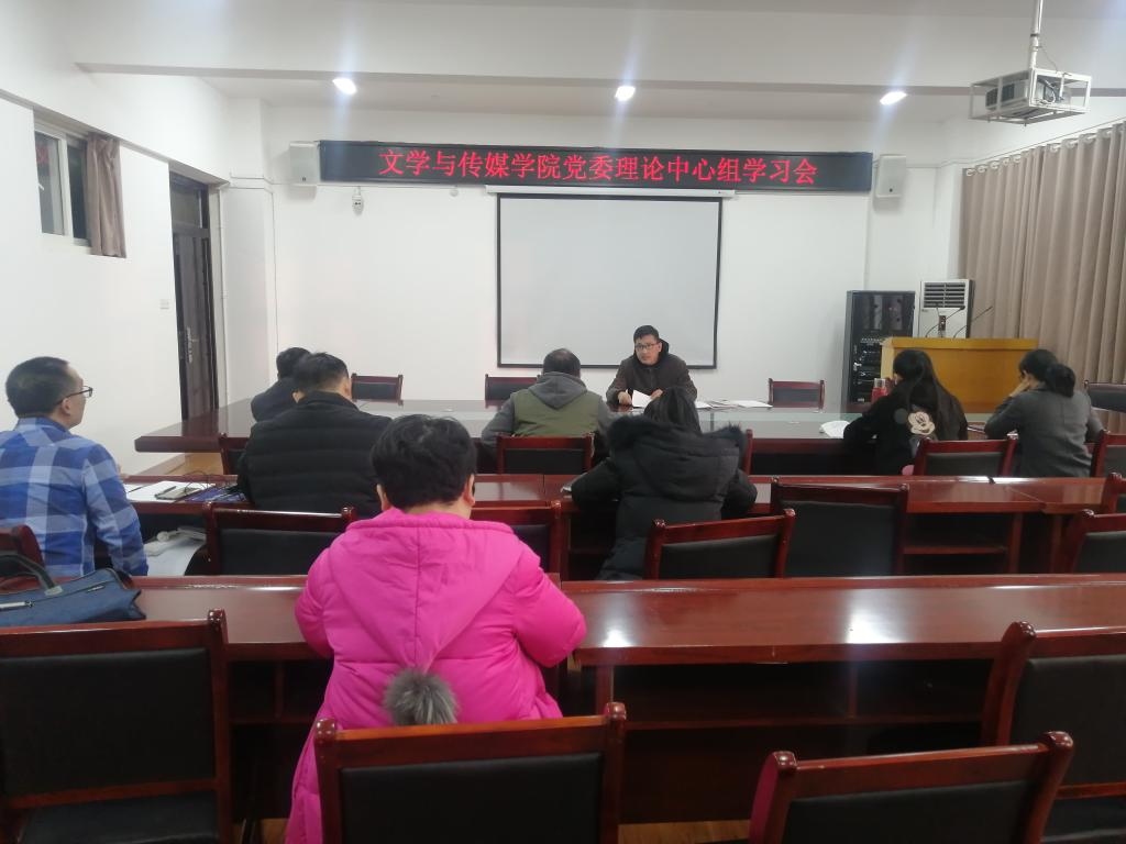 12月13日下午,文学与传媒学院在东教A303室召开党委理论中心组(扩大)学习会,学院党政班子成员、科级以上干部参加学习会,学习会由学院党委书记杨文艺主持。