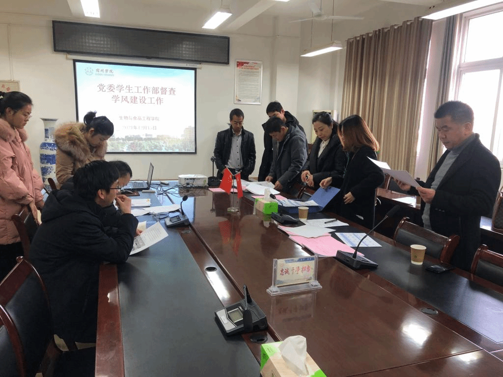 12月15日上午,党委学生工作部副部长贾学彬、资源与土木工程学院党委副书记徐国庆、音乐学院党委副书记李小娜和学生处管理科副科长夏梦雪老师一行4人来我院检查学风建设开展情况,生工学院党委书记赵亮、院长张兴桃、副院长王海潮和全体辅导员参加了会议。