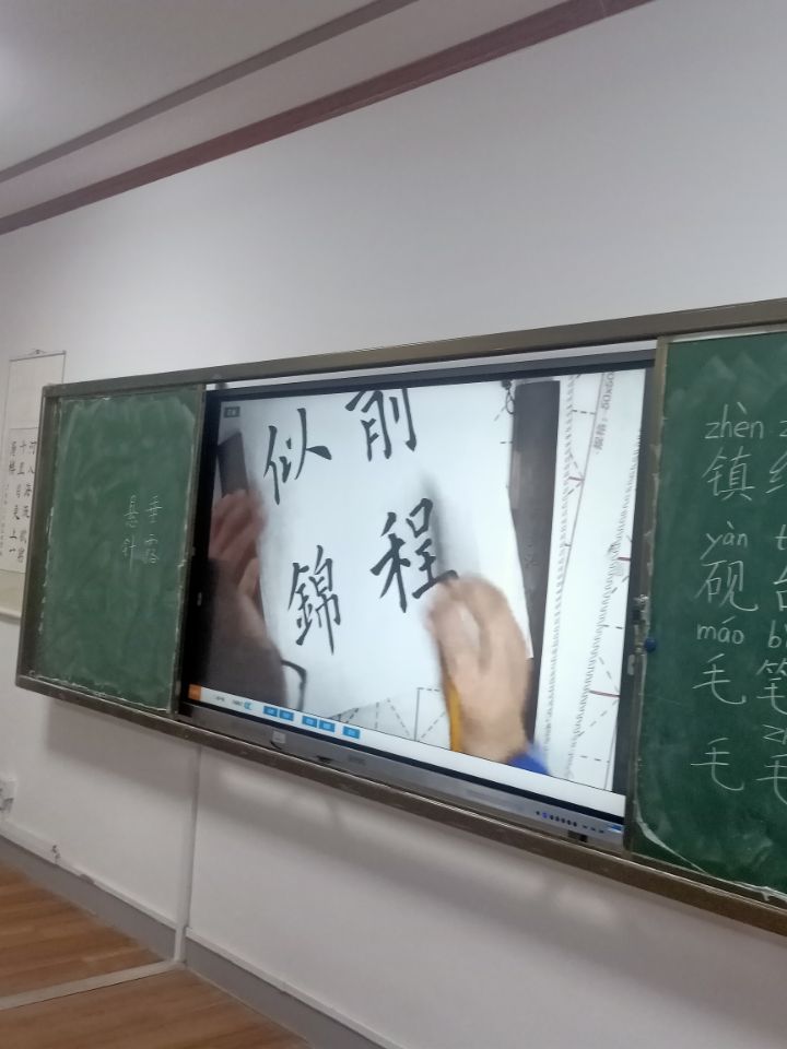 张良斌老师为外籍学生介绍了书法工具名称及其用途,其中包括镇纸、毛笔、笔架、笔筒、砚台和墨汁等,并且用汉语和拼音的形式将其记录在了黑板上,教学生们认识和拼读它们。慢慢地,老师的讲授拉近了外籍学生们与书法的距离,让他们学会用书法小技巧写出愈加漂亮的中国字了。