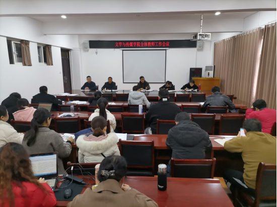 12月16日下午,文学与传媒学院在教A303召开全体教师工作会议,党委书记杨文艺,党委副书记、院长张德岁,党委副书记、纪委书记刘影,副院长李娟、满建及全体教师参会。会议由张德岁主持。